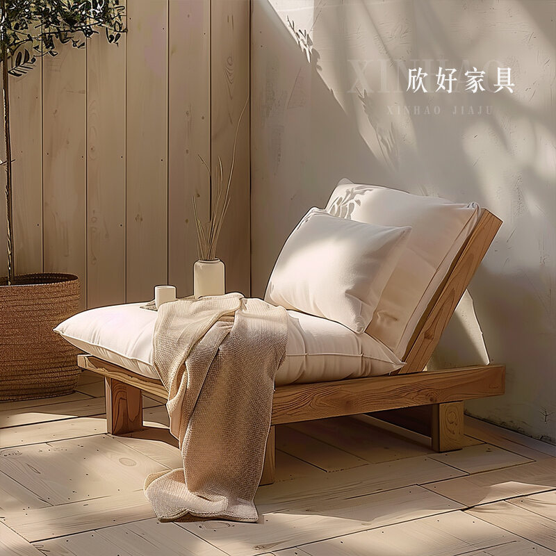 Nordic Style Solid Wood Single Sofa Backrest Leisure Chair Hotel Folk Customizable Assembled Living Room Furniture