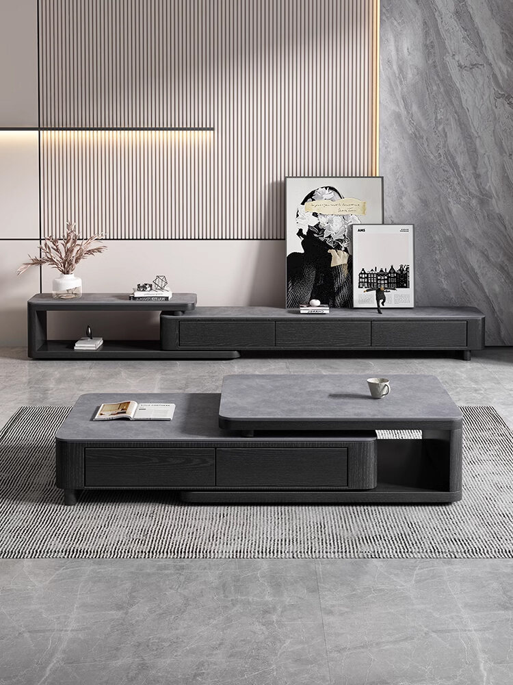 Modern Italian Style Extendable Coffee Table TV Cabinet Combination Living Room Rock Board Furniture Small Size Storage